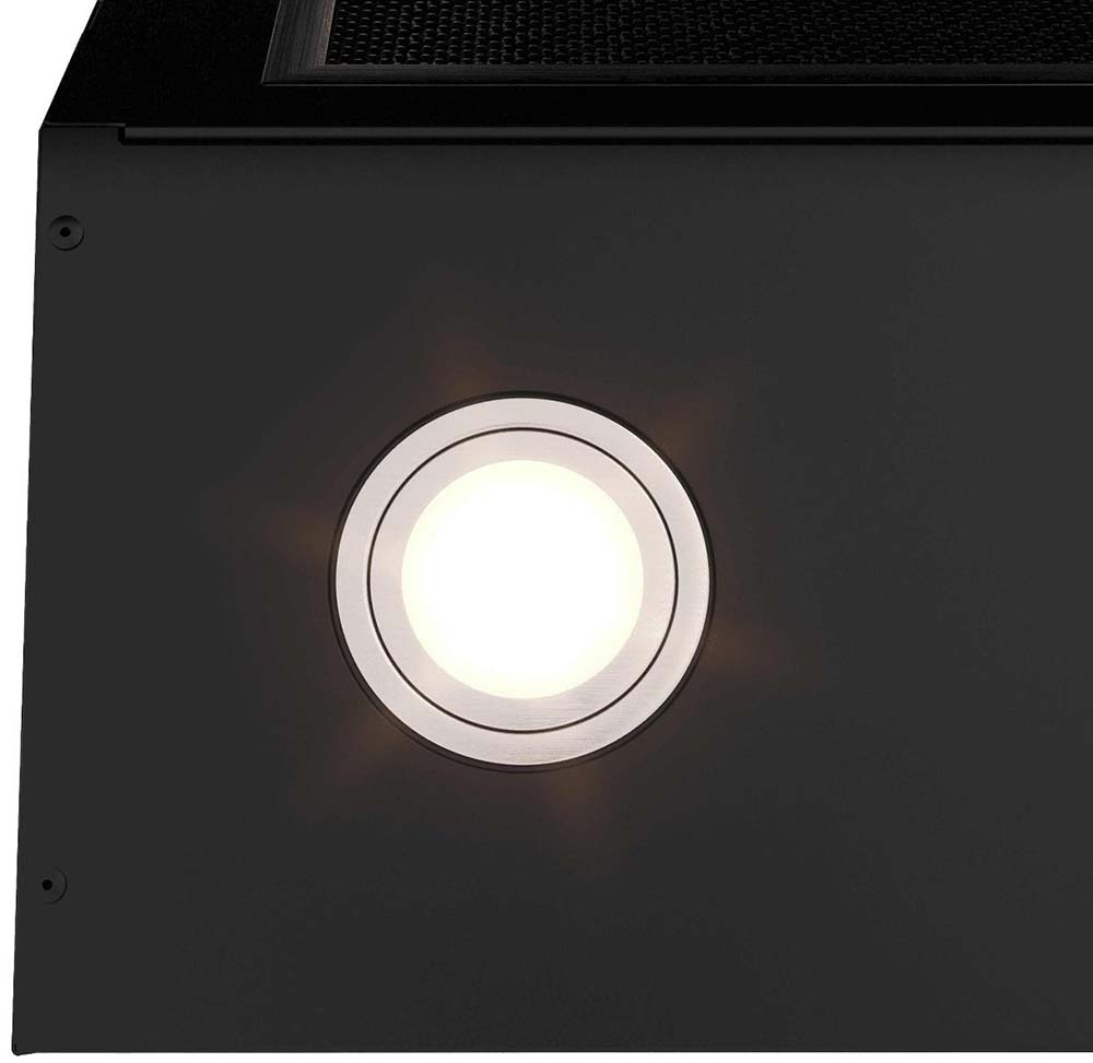В небольших недорогих моделях, особенно встраиваемых, для освещения может использоваться одна лампа — например, галогенная увеличенной мощности. Потолочные и островные вытяжки обычно располагаются над кухонным островом, к которому имеется доступ со всех сторон. В этом случае необходима более яркая подсветка — такие модели могут оснащаться тремя или четырьмя лампами.