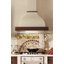 Еще один универсальный цвет — белый, он особенно хорошо подходит для небольших кухонь, так как зрительно способен расширить пространство. На белом фона меньше заметны капли воды и даже частицы жира. В классическом или античном белом выполняются купольные и каминные вытяжки, угловые и встраиваемые модели. Светлые кремовые тона, оттенок слоновой кости — наиболее распространенный вариант для больших вытяжек с окантовкой из натурального дерева.