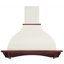 Особенно разнообразен ассортимент классических вытяжек с окантовкой из натурального дерева. Корпус таких моделей выполняется в спокойном белом или бежевом цвете, хорошо сочетающемся с оттенками натурального дерева — мореного дуба, бука, вишни или ореха. Нередко для окантовки используется окрашенное дерево в тон с цветом купола: особенно популярны оттенки ванили, бежевый и кремовый. Иногда дерево специально оставляют неокрашенным, чтобы пользователь мог подобрать оттенок самостоятельно.