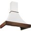 Особенно разнообразен ассортимент классических вытяжек с окантовкой из натурального дерева. Корпус таких моделей выполняется в спокойном белом или бежевом цвете, хорошо сочетающемся с оттенками натурального дерева — мореного дуба, бука, вишни или ореха. Нередко для окантовки используется окрашенное дерево в тон с цветом купола: особенно популярны оттенки ванили, бежевый и кремовый. Иногда дерево специально оставляют неокрашенным, чтобы пользователь мог подобрать оттенок самостоятельно.