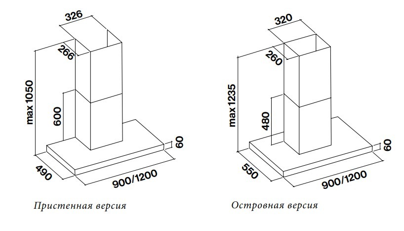 Что касается высоты самой вытяжки, то все устройства принято делить на: