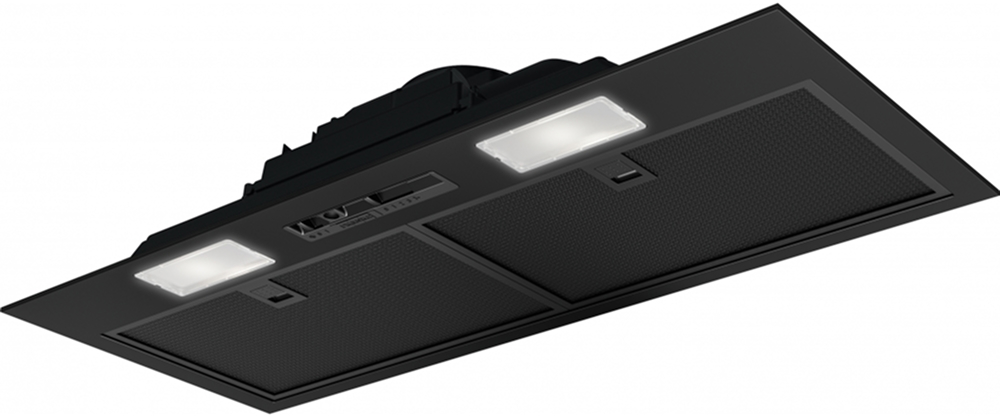 Вытяжка, встраиваемая в потолок, часто устанавливается над кухонным островом в просторной кухне и отличается достаточно высокой мощностью: она может работать как в режиме рециркуляции, так и в режиме отвода, так как воздуховод также скрыт в потолке. Вытяжки могут монтироваться в подвесной потолок либо устанавливаться в специальные многоярусные конструкции из гипсокартона непосредственно во время ремонта кухни. Для управления ими используется пульт ДУ.