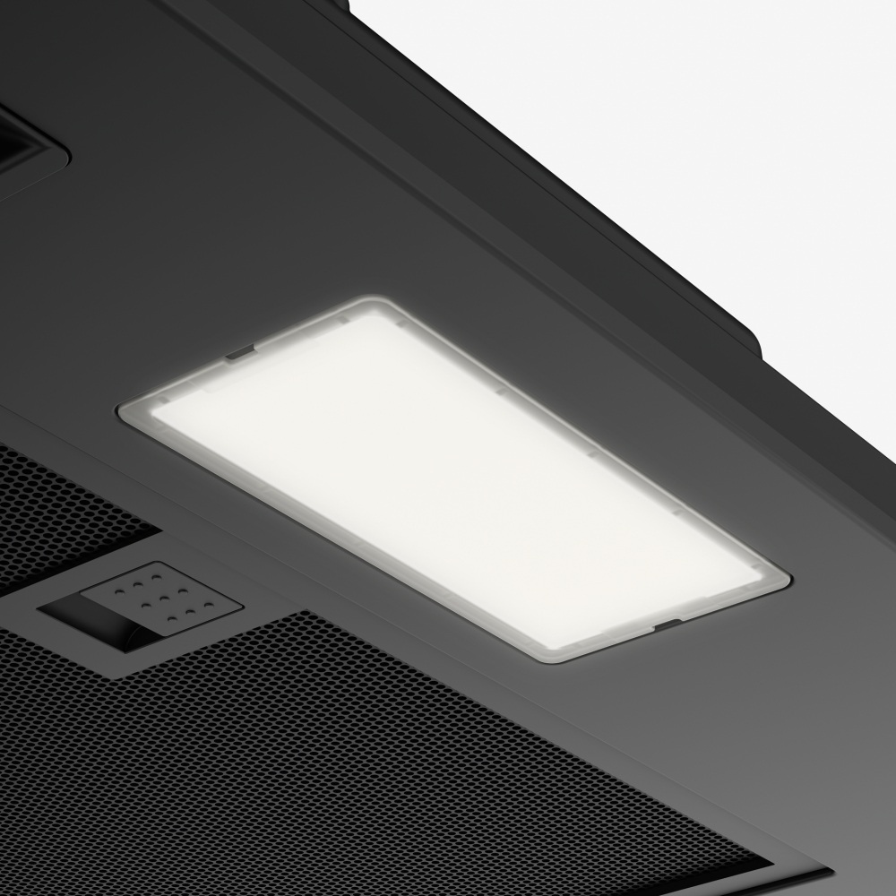 Встроенное освещение — функция, которая присутствует практически во всех современных вытяжках. Центрального освещения часто недостаточно для хорошего обзора рабочей зоны, особенно если над ней установлен подвесной шкаф. Интегрированные в вытяжку лампы позволяют готовить с комфортом, не напрягая зрение, их можно включать независимо от использования самой вытяжки.