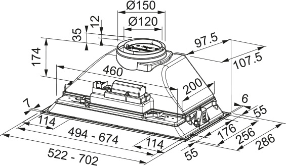Встраиваемая вытяжка Franke FBI 705 BK — ультратонкое и высокоэффективное решение для современных кухонь, где важны компактность, производительность и эстетическая лаконичность. Модель разработана для встраивания в навесной шкаф, что позволяет сохранить целостность интерьера и избежать визуального загромождения. Её габариты — всего 17,4 см в высоту, 70,2 см в ширину и 28,6 см в глубину — делают устройство одним из самых низкопрофильных в своём классе, идеально подходящим для помещений с ограниченным пространством над варочной зоной.
