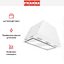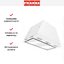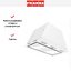 Вытяжка выглядит как компактный модуль для встраивания в шкаф: прямоугольный корпус глубиной 28.2 см и шириной 50 см, высота 28.8 см. Цветовое сочетание — белого цвета с элементами из нержавеющей стали — придаёт строгую, но сдержанную внешность. Дизайн отмечен как Smart, что отражается в лаконичных линиях и минимальном числе выступающих деталей; фронтальная панель удобно скрывает кнопочные органы управления.