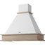 Еще один универсальный цвет — белый, он особенно хорошо подходит для небольших кухонь, так как зрительно способен расширить пространство. На белом фона меньше заметны капли воды и даже частицы жира. В классическом или античном белом выполняются купольные и каминные вытяжки, угловые и встраиваемые модели. Светлые кремовые тона, оттенок слоновой кости — наиболее распространенный вариант для больших вытяжек с окантовкой из натурального дерева.
