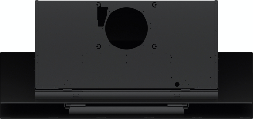 Воздух всасывается по периметру вытяжки через узкие щели. Он собирается в потоки, которые направляются прямо к фильтрам внутри, не рассеивается на кухне. Благодаря этой технологией вытяжку можно сделать компактнее и энергоэффективнее.