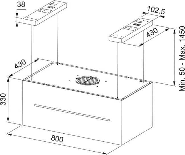 Вытяжка, встраиваемая в потолок, часто устанавливается над кухонным островом в просторной кухне и отличается достаточно высокой мощностью: она может работать как в режиме рециркуляции, так и в режиме отвода, так как воздуховод также скрыт в потолке. Вытяжки могут монтироваться в подвесной потолок либо устанавливаться в специальные многоярусные конструкции из гипсокартона непосредственно во время ремонта кухни. Для управления ими используется пульт ДУ.