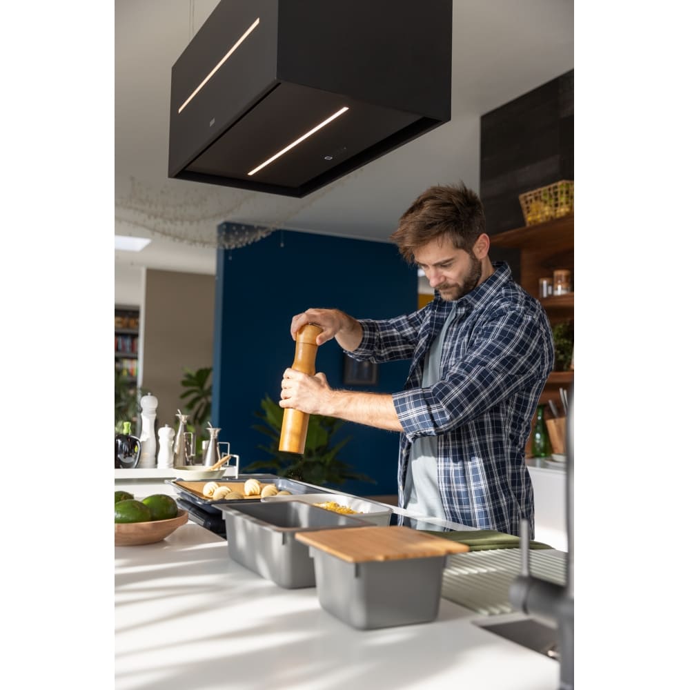 Потолочный вариант встраивания делает модель идеальной для современных проектов с островными или линейными плитами. Вытяжка гармонично смотрится в минималистичных и лофтовых интерьерах, при этом ее функционал подходит как для семейных кухонь, так и для небольших студий. Простая эксплуатация, понятные режимы и качественные материалы обеспечат долгую и беспроблемную службу техники.