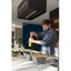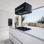 Вытяжки, встраиваемые в столешницу — эффективная инновация, которая подойдет для установки в кухне любой площади. Такие вытяжки размещаются за варочной поверхностью или рядом с ней. В отключенном состоянии всасывающая панель находится под столешницей, но после включения одной или нескольких конфорок она автоматически выдвигается при помощи специального лифтового механизма. Загрязненный воздух улавливается, не успевая распространиться по помещению. Когда вытяжка убрана, на виду остается только сенсорная панель управления. Недостатком подобных моделей является только сравнительно высокая цена.