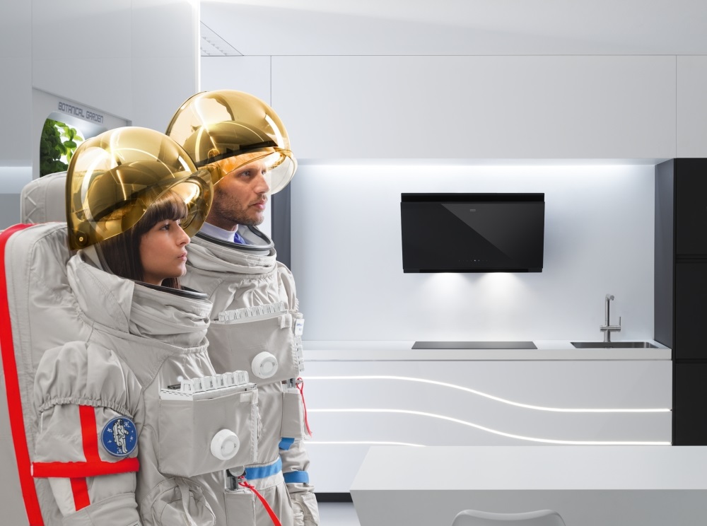В небольших помещениях можно использовать несколько типов вытяжек. Прежде всего это экономичные, незаметные и недорогие устройства, встраиваемые в подвесной шкаф или в потолок. Нередко они оснащаются выдвижными панелями, увеличивающими площадь всасывания. Еще один тип встраиваемых устройств — со встройкой в столешницу рядом с варочной панелью. Эти производительные приборы хороши тем, что в нерабочем состоянии полностью скрыты от глаз.