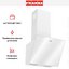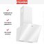 Выглядит как наклонная вытяжка с выразительным стеклянным экраном и облицовкой из нержавеющей стали. Модель выполнена в белом цвете в духе коллекции Maris: лаконичные линии, слегка наклонённая передняя панель и аккуратно спрятанные элементы управления. Размеры 81.9×49×41.4 см делают прибор заметным, но не громоздким; при необходимости высоту можно увеличивать до 120 см, сохраняя ровный силуэт на кухне.
