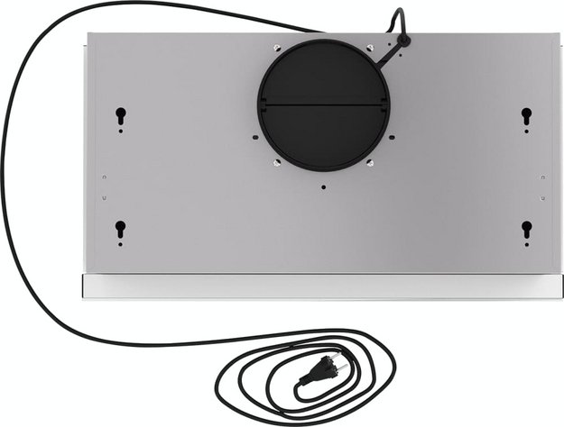 Вытяжка работает в режимах отвода и циркуляции, поэтому загрязнения удаляются из комнаты и перенаправляются в воздуховод, при этом можно очистить воздух и использовать повторно за счет возвращения его в помещение. Количество скоростей в этой модели: 2 шт. При этом максимальная производительность составляет 750 куб.м./ч. Уровень шума при полной загруженности — 50 дБ.
