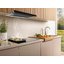 Вытяжки, встраиваемые в столешницу — эффективная инновация, которая подойдет для установки в кухне любой площади. Такие вытяжки размещаются за варочной поверхностью или рядом с ней. В отключенном состоянии всасывающая панель находится под столешницей, но после включения одной или нескольких конфорок она автоматически выдвигается при помощи специального лифтового механизма. Загрязненный воздух улавливается, не успевая распространиться по помещению. Когда вытяжка убрана, на виду остается только сенсорная панель управления. Недостатком подобных моделей является только сравнительно высокая цена.