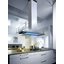 Воздух всасывается по периметру вытяжки через узкие щели. Он собирается в потоки, которые направляются прямо к фильтрам внутри, не рассеивается на кухне. Благодаря этой технологией вытяжку можно сделать компактнее и энергоэффективнее.