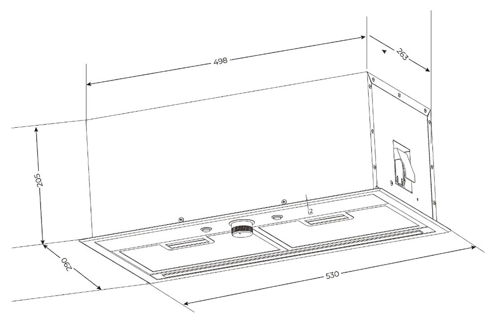 У многих встраиваемых моделей глубина может регулироваться, а рабочая всасывающая поверхность — увеличиваться благодаря выдвижному козырьку, но габариты корпуса такой вытяжки должны соответствовать размерам подвесного шкафа. Выбирать основные размеры вытяжки с соблюдением всех требований эффективности и безопасности работы следует также не в ущерб общему дизайну помещения.