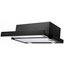 Черная вытяжка с выдвижной панелью встраивается в шкаф и эффективно очищает воздух на кухне от пара и запахов. Алюминиевый жироулавливающий фильтр надежно задерживает загрязнения. Для работы в режиме рециркуляции необходимо дополнительно приобрести комплект угольных фильтров.