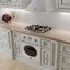 Еще один универсальный цвет — белый, он особенно хорошо подходит для небольших кухонь, так как зрительно способен расширить пространство. На белом фона меньше заметны капли воды и даже частицы жира. В классическом или античном белом выполняются купольные и каминные вытяжки, угловые и встраиваемые модели. Светлые кремовые тона, оттенок слоновой кости — наиболее распространенный вариант для больших вытяжек с окантовкой из натурального дерева.