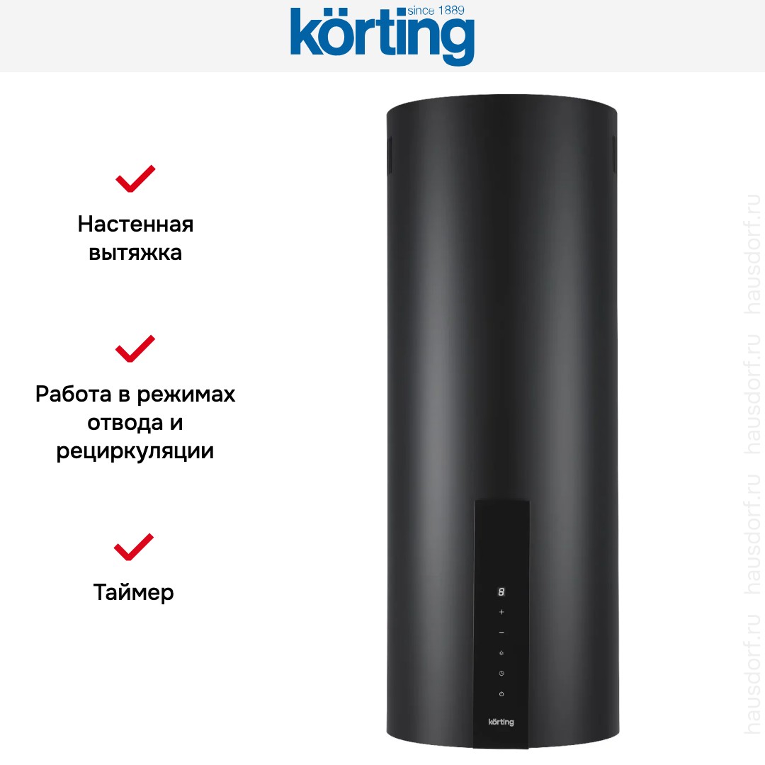 Вытяжка Korting KHC 35969 DN Cylinder — стильный настенный прибор в чёрном металлическом исполнении, сочетающий лаконичный цилиндрический силуэт с продуманной функциональностью для современной кухни. Компактные габариты 93×35.15×43 см делают её удобной для установки над плитой даже в ограниченном пространстве, а высота 93 см обеспечивает аккуратную интеграцию с навесными шкафами; диаметр воздуховода 150 мм и максимальная производительность до 900 м³/ч гарантируют эффективный отвод запахов и пара в режиме отвода, при необходимости возможна циркуляция с установкой угольного фильтра (KIT 0286 приобретается отдельно). Сердцем конструкции является BLDC-мотор постоянного тока мощностью 75 Вт, который сочетает высокую эффективность с экономичным энергопотреблением — номинальная потребляемая мощность 77 Вт при сети 220-240 В и частоте 50 Гц; один двигатель обеспечивает ровную тягу и тихую работу, которую подтверждает уровень шума всего 51 дБ на максимальной скорости. Управление реализовано электронно: фронтальные сенсорные элементы и информативный дисплей с индикацией ступеней мощности позволяют быстро выбрать один из трёх режимов скорости, активировать таймер или функцию автоматического отключения для удобства эксплуатации; длина кабеля 1,5 м упрощает подведение питания. Жироулавливающий алюминиевый фильтр входит в комплект и пригоден для мытья в посудомоечной машине, а встроенный антивозвратный клапан защищает кухню от обратного движения воздуха; предусмотрена возможность установки дополнительного угольного модуля для организации рециркуляции. Освещение рабочего пространства организовано с помощью двух светодиодных ламп мощностью по 1 Вт каждая, которые дают яркий и экономичный свет над варочной зоной. Конструкция из металла обеспечивает долговечность и устойчивость к нагрузкам, при этом масса нетто составляет 13,9 кг, брутто — 15,95 кг, что облегчает монтаж и транспортировку. Среди особенностей модели — мотор постоянного тока, минимизация вибраций и снижение уровня шума при высокой производительности, а также наличие всех необходимых аксессуаров в базовой комплектации: жироулавливающий фильтр и обратный клапан. Продуманная эргономика, современное электронное управление и продвинутая система фильтрации делают устройство отличным выбором для тех, кто ценит чистоту воздуха и комфортную атмосферу приготовления пищи в бытовых условиях; данная модель выгодно выделяется на фоне других вытяжек сочетанием мощности, тихой работы и стильного дизайна, адаптированного к интерьеру в тёмных тонах, и подойдёт для квартир и частных домов, где важны эффективность, экономичность и удобство обслуживания.