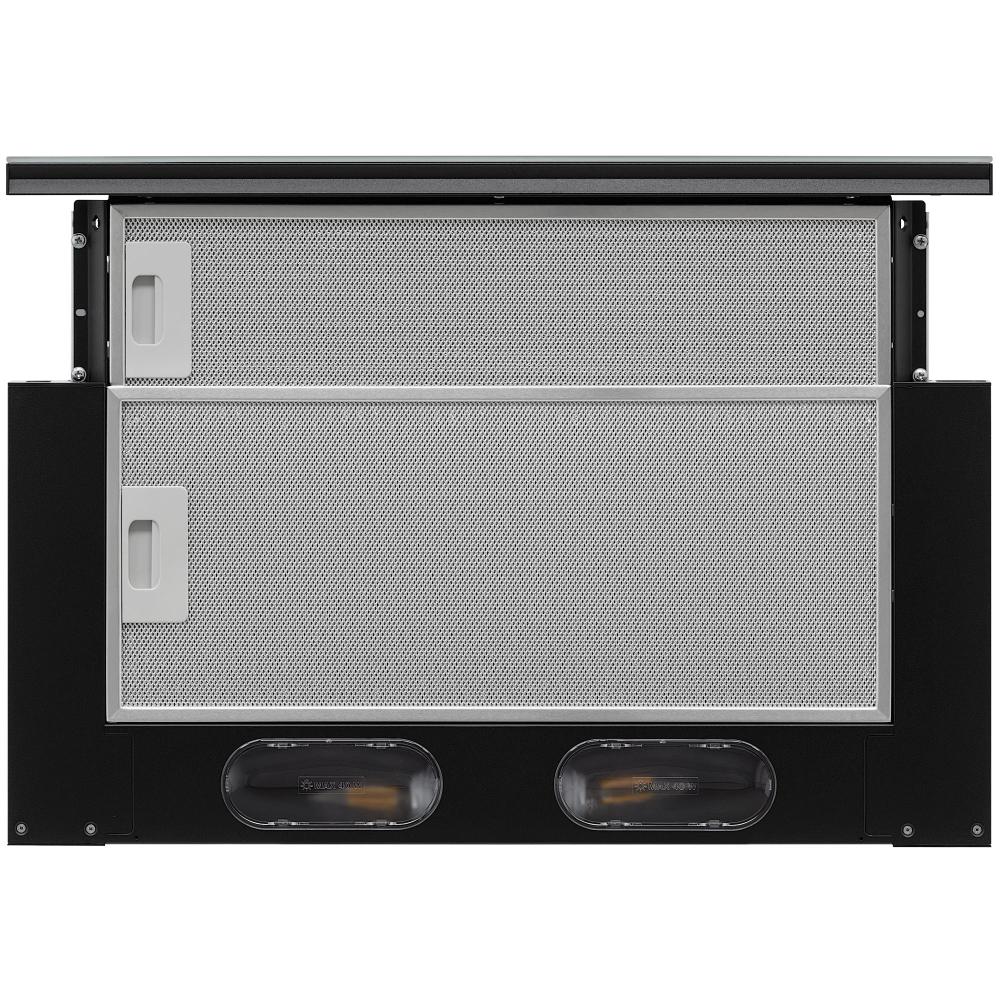 В вытяжках, интегрированных в варочную поверхность и работающих в режиме рециркуляции, панель выдвигается при включении зоны нагрева автоматически. В закрытом же состоянии видны только сенсорные управляющие элементы, которые находятся вровень с варочной поверхностью.