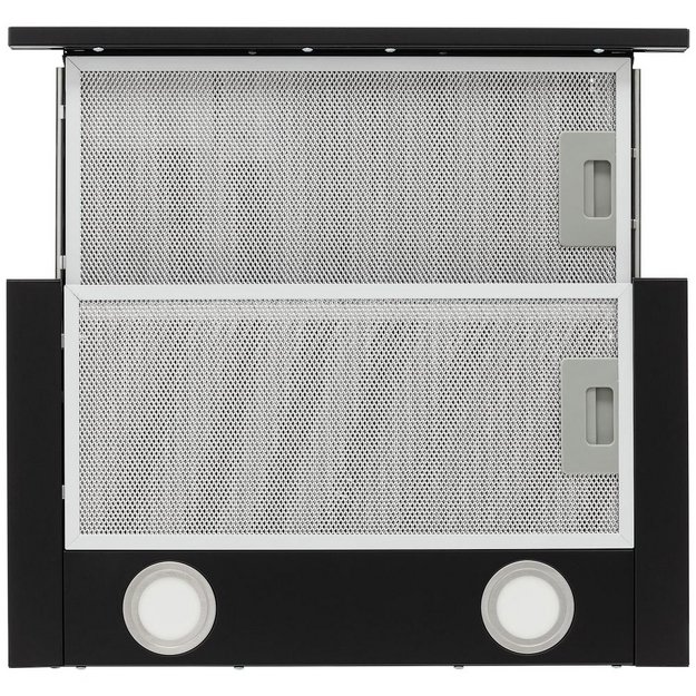 В вытяжках, интегрированных в варочную поверхность и работающих в режиме рециркуляции, панель выдвигается при включении зоны нагрева автоматически. В закрытом же состоянии видны только сенсорные управляющие элементы, которые находятся вровень с варочной поверхностью.