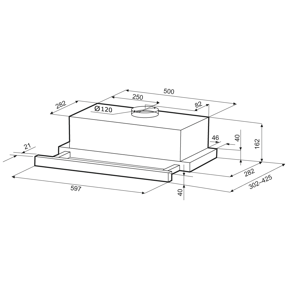 Можно выделить два основных вида вытяжек с выдвижной панелью. В вытяжках, встраиваемых в подвесной шкаф, выдвижная панель необходима, так как размеры таких устройств определяются размерами самого шкафа. В закрытом состоянии глубина вытяжки может быть меньше глубины варочной поверхности. Телескопическая выдвижная панель, которая устанавливается преимущественно в устройствах, работающих в режиме отвода, гарантирует полный захват воздуха, загрязненного каплями жира, частицами сажи, испарениями. Панель можно выдвинуть как нажатием на кнопку, так и потянув за ее переднюю часть. В некоторых моделях при подобном выдвижении одновременно включается подсветка. Когда же панель убрана, вытяжка становится практически незаметной — такой вариант лучше всего подходит для небольшой кухни.