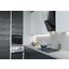 Воздух всасывается по периметру вытяжки через узкие щели. Он собирается в потоки, которые направляются прямо к фильтрам внутри, не рассеивается на кухне. Благодаря этой технологией вытяжку можно сделать компактнее и энергоэффективнее.