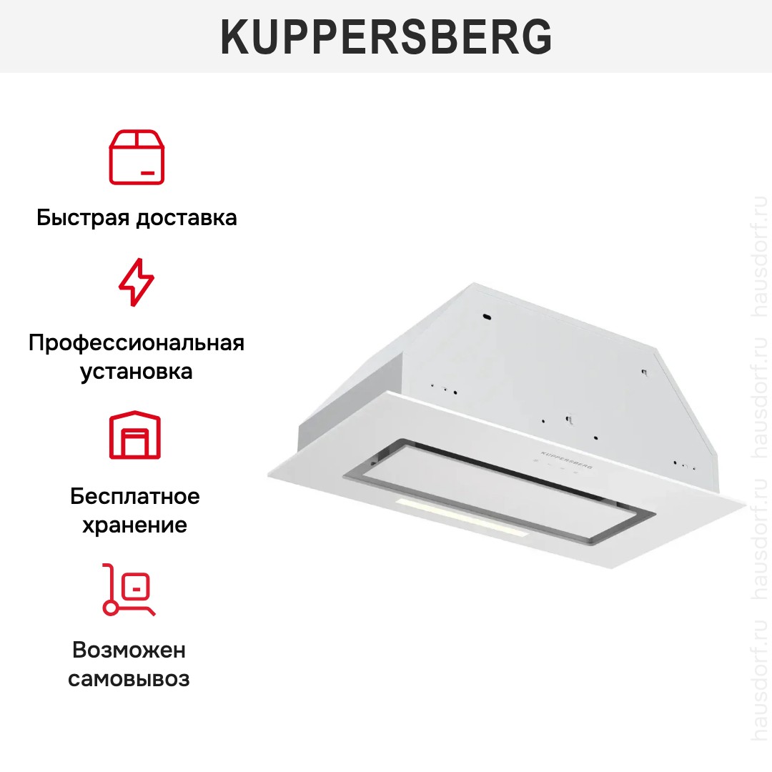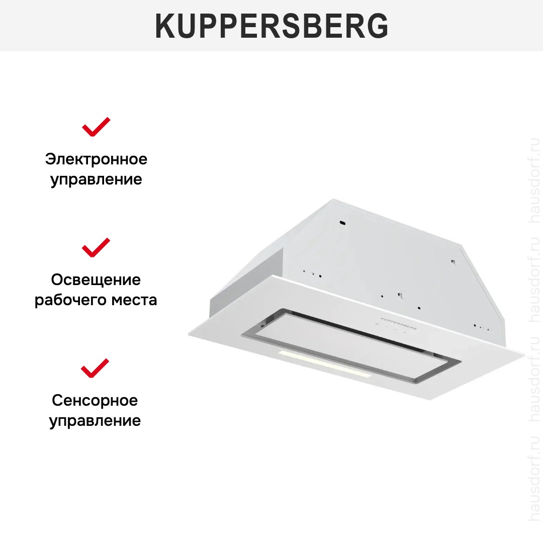 Встраиваемая вытяжка — выбор тех, кто хочет максимально задекорировать технику, или владельцев маленькой кухни. Тип встраивания: в шкаф. Обратите внимание на цветовые сочетания модели Kuppersberg INTOUCH-1 60 WG, чтобы органично вписать ее в свою квартиру. Оттенок корпуса: белый. Благодаря лампочкам, которые расположены на нем, можно освещать плиту и столешницу рядом, чтобы готовить было еще проще и приятнее.