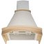Особенно разнообразен ассортимент классических вытяжек с окантовкой из натурального дерева. Корпус таких моделей выполняется в спокойном белом или бежевом цвете, хорошо сочетающемся с оттенками натурального дерева — мореного дуба, бука, вишни или ореха. Нередко для окантовки используется окрашенное дерево в тон с цветом купола: особенно популярны оттенки ванили, бежевый и кремовый. Иногда дерево специально оставляют неокрашенным, чтобы пользователь мог подобрать оттенок самостоятельно.