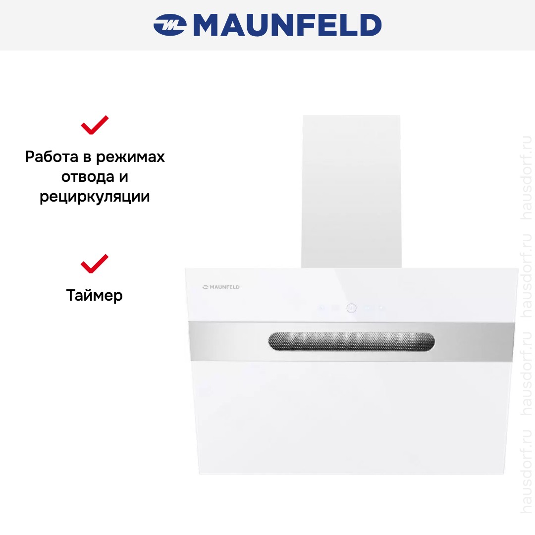 Кухонная вытяжка MAUNFELD Moon 60 изготовлена в белом цвете со вставкой сатин и за счет своего настенного крепления позволяет значительно экономить свободное место в помещении. Отлично подходит для компактных пространств, рекомендуется применять прибор для комнат площадью не более 40 кв.м. Передняя панель расположена наклонно, а общая ширина составляет всего 59,5 см. За счет оригинального дизайна изделие отлично дополняет интерьеры в современном стиле, хай-тек, минималистичные и футуристические композиции. Две светодиодные лампочки мощностью 1,5 Вт на корпусе позволяют одновременно увеличить количество света на кухне и лучше осветить зону приготовления пищи. Серебряная фурнитура ярко дополняет модель и придает общему внешнему виду изысканность.