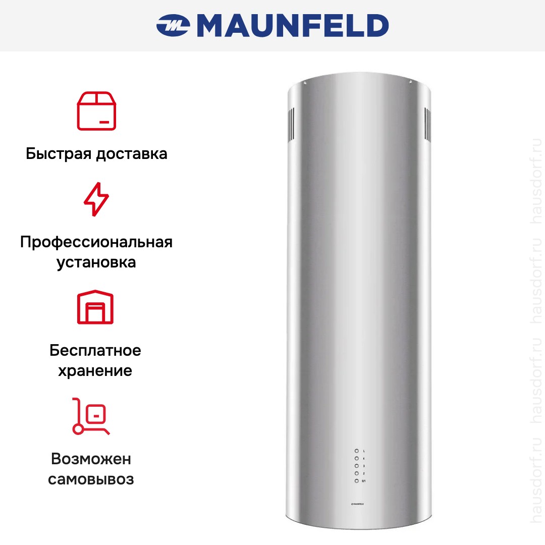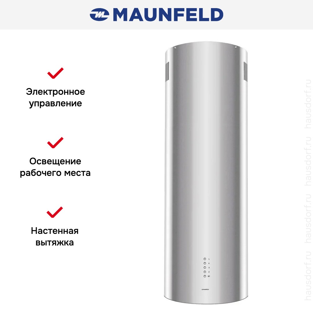 Вытяжка Maunfeld LEE WALL 39 LONG INOX сочетает стильный дизайн и мощную производительность для современной кухни. Это настенная модель с вытянутым цилиндрическим корпусом и аккуратной рабочей панелью снизу. Нержавеющая сталь придает изделию профессиональный вид и легко вписывается в разные интерьеры. Благодаря компактной ширине прибор занимает минимум места над конфоркой.