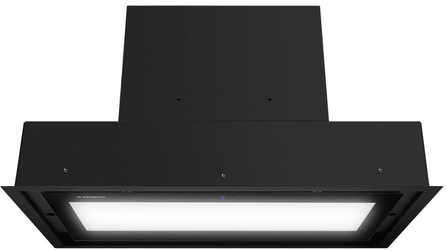 Воздух всасывается по периметру вытяжки через узкие щели. Он собирается в потоки, которые направляются прямо к фильтрам внутри, не рассеивается на кухне. Благодаря этой технологией вытяжку можно сделать компактнее и энергоэффективнее.