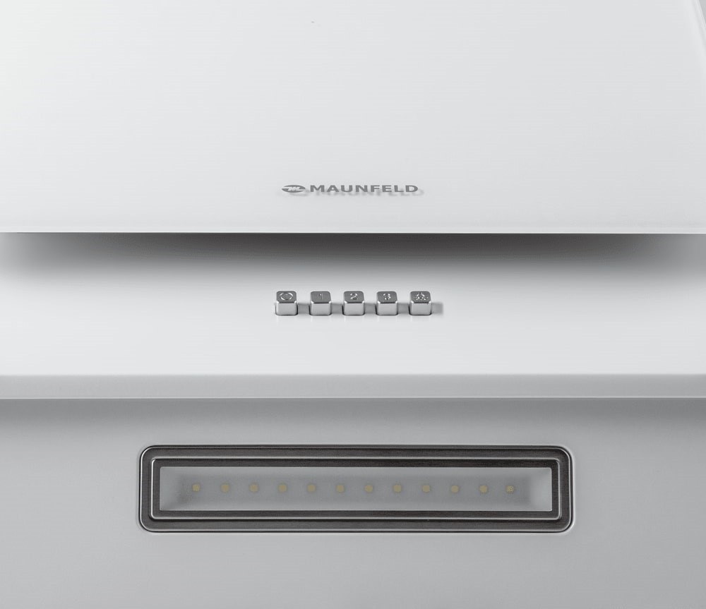 Вытяжка Maunfeld Wind 60 A White выполнена в наклонном стиле и сочетает металл и стекло в лаконичном белом корпусе. Такой дизайн не загромождает визуально пространство над плитой и делает рабочую зону комфортной. Наклонный экран освобождает не только создаёт современный акцент в интерьере, но и облегчает доступ к дальним конфоркам.