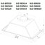 Для удобства пользователя следует выбирать вытяжку так, чтобы глубина даже самого большого купола не превышала глубину столешницы. У большинства современных купольных моделей глубина точно равна ширине, поскольку и стандартные варочные поверхности чаще всего имеют квадратную форму. Это значит, что вытяжка должна располагаться точно над поверхностью плиты, так, чтобы их оси совпадали. Стандартные размеры глубины таким образом могут составлять 30, 45, 50, 60, 80, 90, 100, 120 см.
