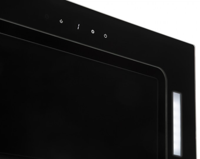 Встраиваемые и простые настенные модели, как правило, оснащаются боковой панелью управления, состоящей из нескольких кнопок. Их количество зависит от числа скоростей, наличия интенсивного режима и встроенного освещения. Боковое расположение панели управления делает вытяжку еще более незаметной.