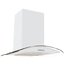 Настенная вытяжка белого цвета с козырьком из закаленного стекла. Вы можете выбрать одну из трех скоростей с помощью кнопок на фронтальной панели управления. Галогенное освещение делает работу с прибором максимально удобным.