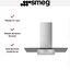 Вытяжка Smeg сделана из нержавеющей стали, перпендикулярно воздуховоду установлен широкий стеклянный экран, который покрывает даже нестандартную варочную панель. Данную модель необходимо разместить на стене на определенном расстоянии от рабочей поверхности (обратите внимание — все параметры перечислены в инструкции).