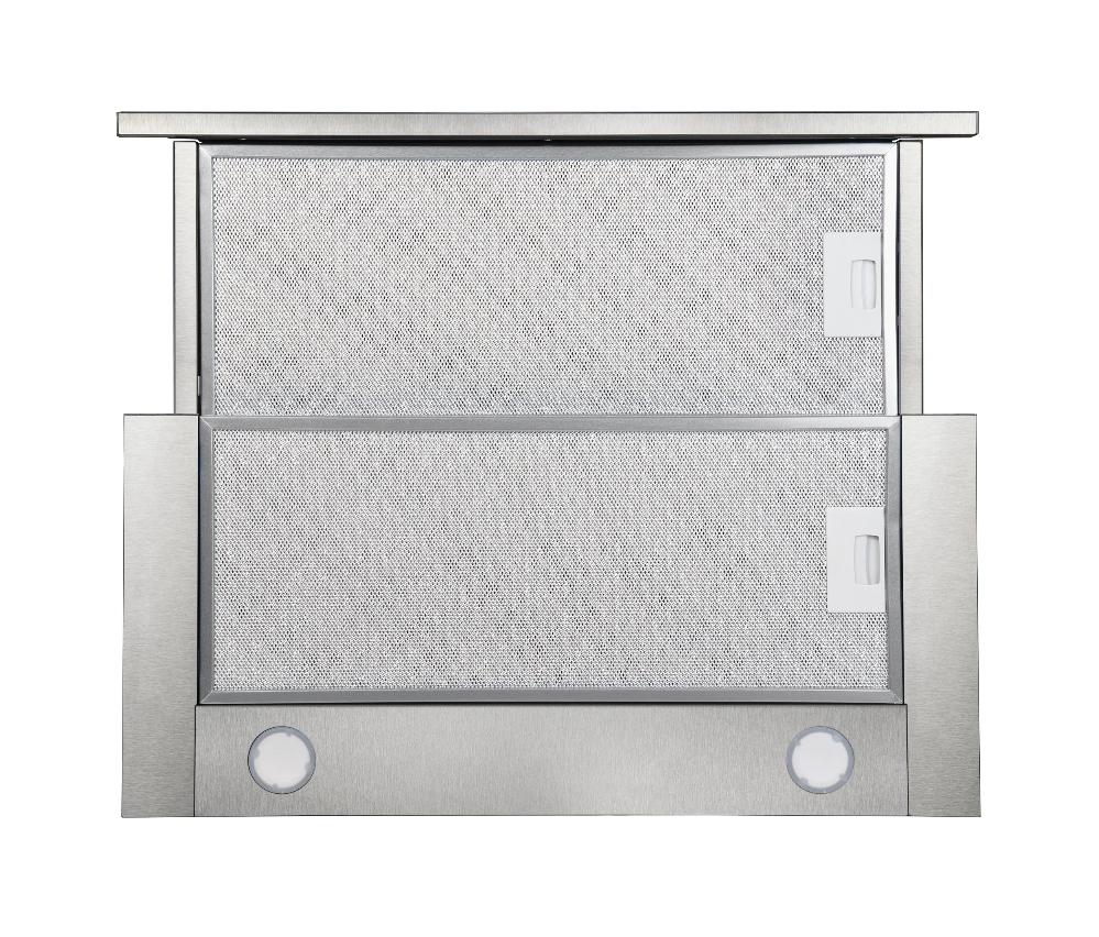 Вытяжки, встраиваемые в столешницу — эффективная инновация, которая подойдет для установки в кухне любой площади. Такие вытяжки размещаются за варочной поверхностью или рядом с ней. В отключенном состоянии всасывающая панель находится под столешницей, но после включения одной или нескольких конфорок она автоматически выдвигается при помощи специального лифтового механизма. Загрязненный воздух улавливается, не успевая распространиться по помещению. Когда вытяжка убрана, на виду остается только сенсорная панель управления. Недостатком подобных моделей является только сравнительно высокая цена.