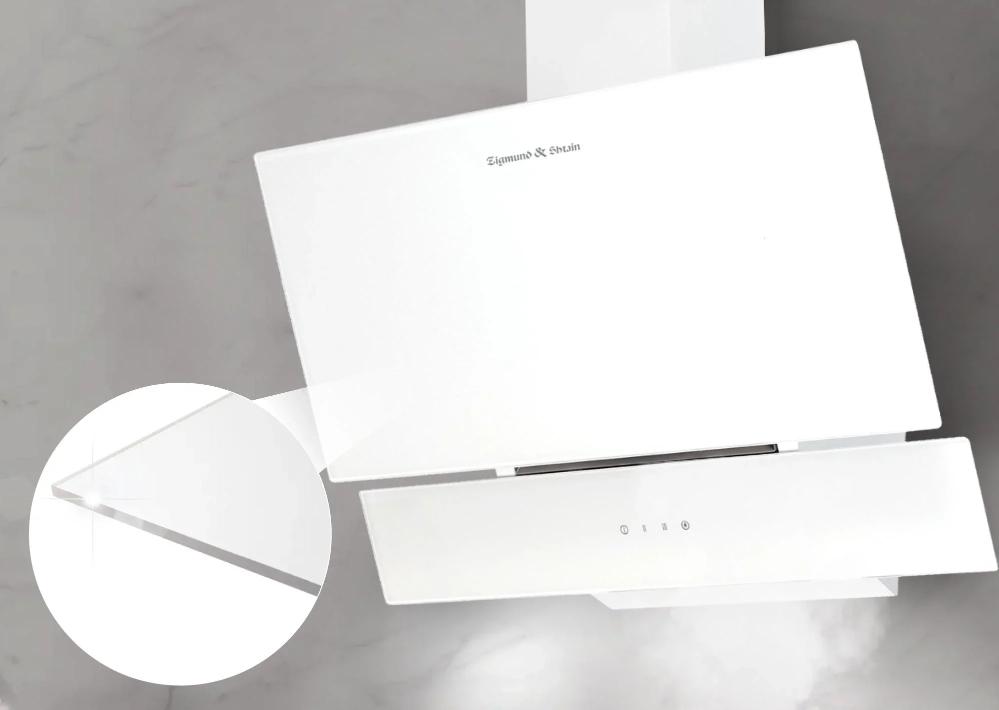 Данная вытяжка крепится на стену и имеет наклонную фронтальную панель, что придает изюминку дизайну и позволяет сохранить свободное рабочее пространство внизу. Обратите внимание на цветовые сочетания модели Zigmund Shtain K 146.6 W, чтобы органично вписать ее в свою квартиру. Оттенок корпуса: белый. Благодаря лампочкам, которые расположены на нем, можно освещать плиту и столешницу рядом, чтобы готовить было еще проще и приятнее.