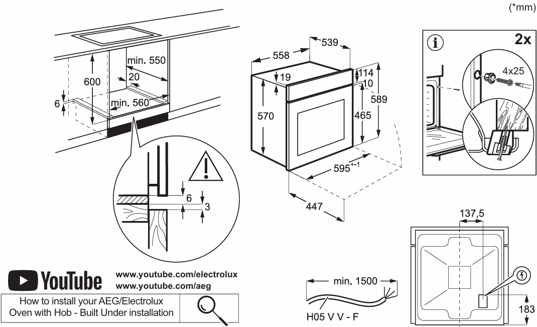 Electrolux EOD5F70BX - схема с размерами версия 2 к духовому шкафу на разных языках на Hausdorf