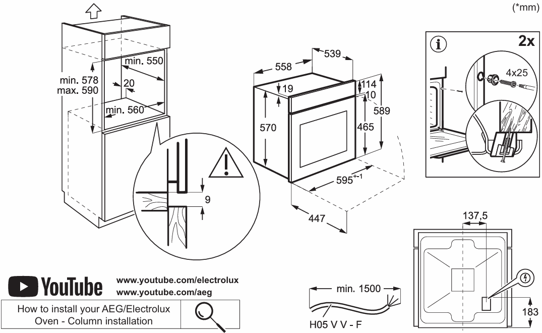 Electrolux EOD5F70BX - схема с размерами версия 3 к духовому шкафу на разных языках на Hausdorf