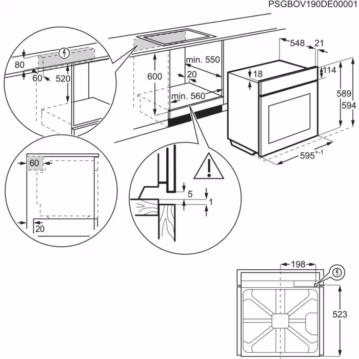 Electrolux EOF8H39H - схема встраивания к духовому шкафу на разных языках на Hausdorf