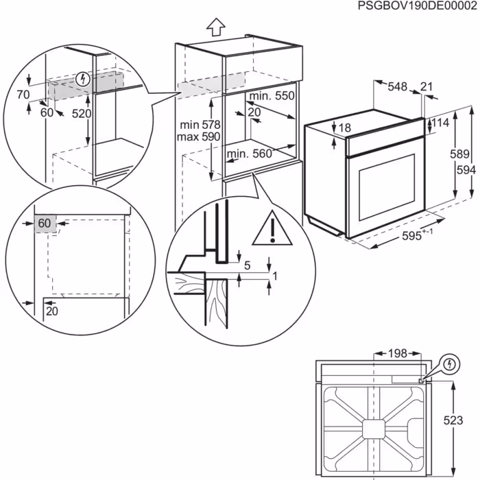 Electrolux EOF8H39H - схема встраивания версия 2 к духовому шкафу на разных языках на Hausdorf