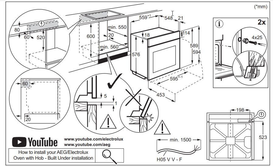 Electrolux LOE8F38Z - схема встраивания к духовому шкафу на разных языках на Hausdorf