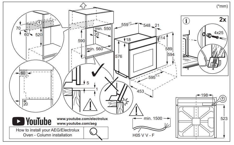 Electrolux LOE8F38Z - схема встраивания версия 2 к духовому шкафу на разных языках на Hausdorf