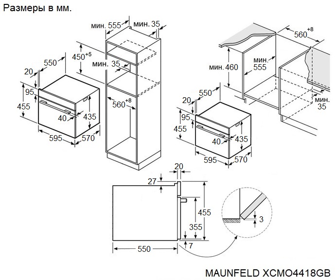 Maunfeld XCMO4418GB Matt - схема с размерами к духовому шкафу на разных языках на Hausdorf