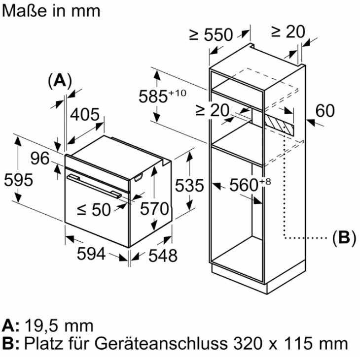 Neff B5ACJ7AG3 - схема встраивания с размерами (1) к духовому шкафу на разных языках на Hausdorf