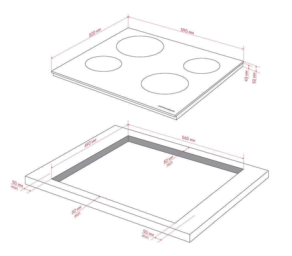 Kuppersberg ECO 603 - схема встраивания к варочной панели на разных языках на Hausdorf