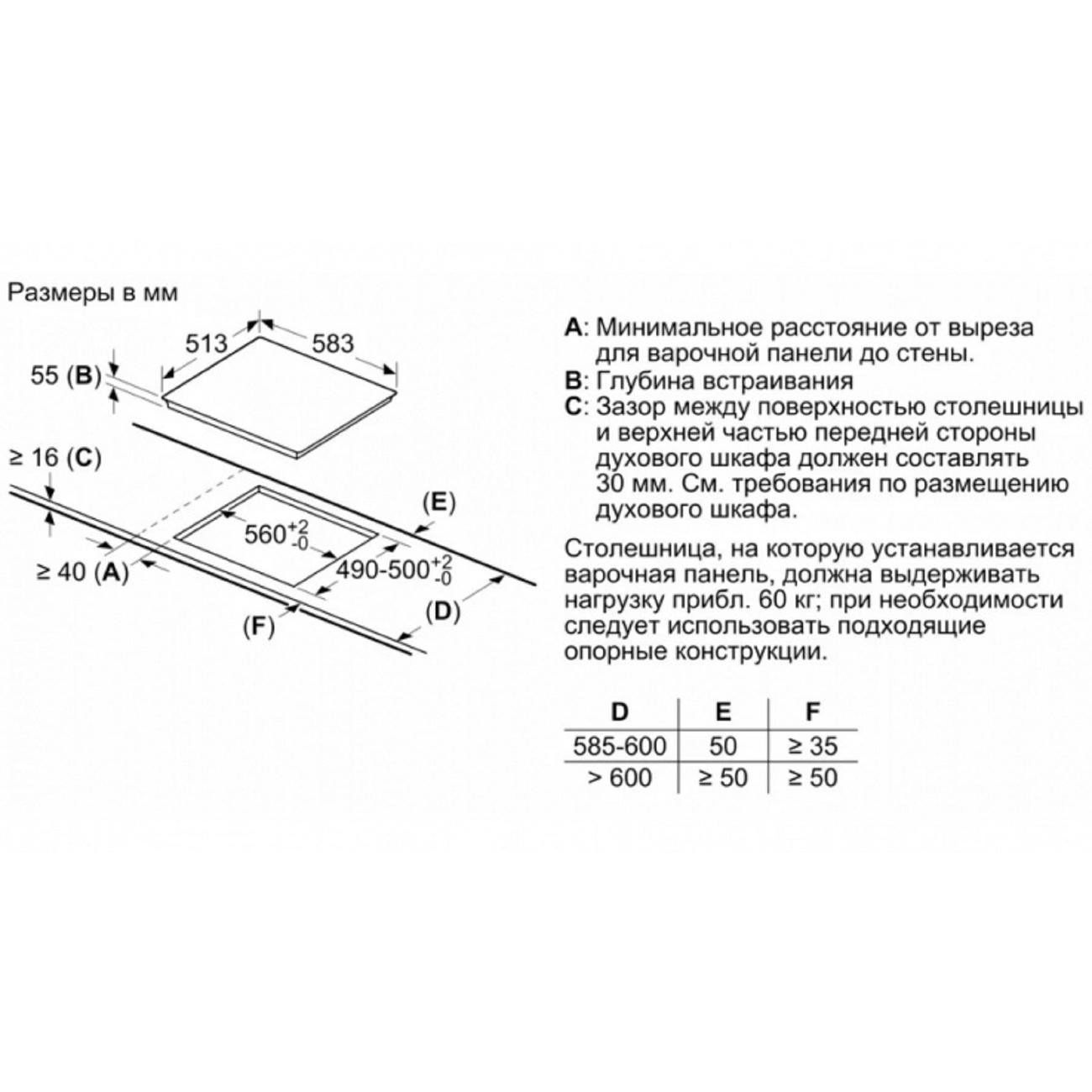 Сохранить файл: Схема с размерами к Bosch PIE645BB5E.JPG, 117.17 Кб