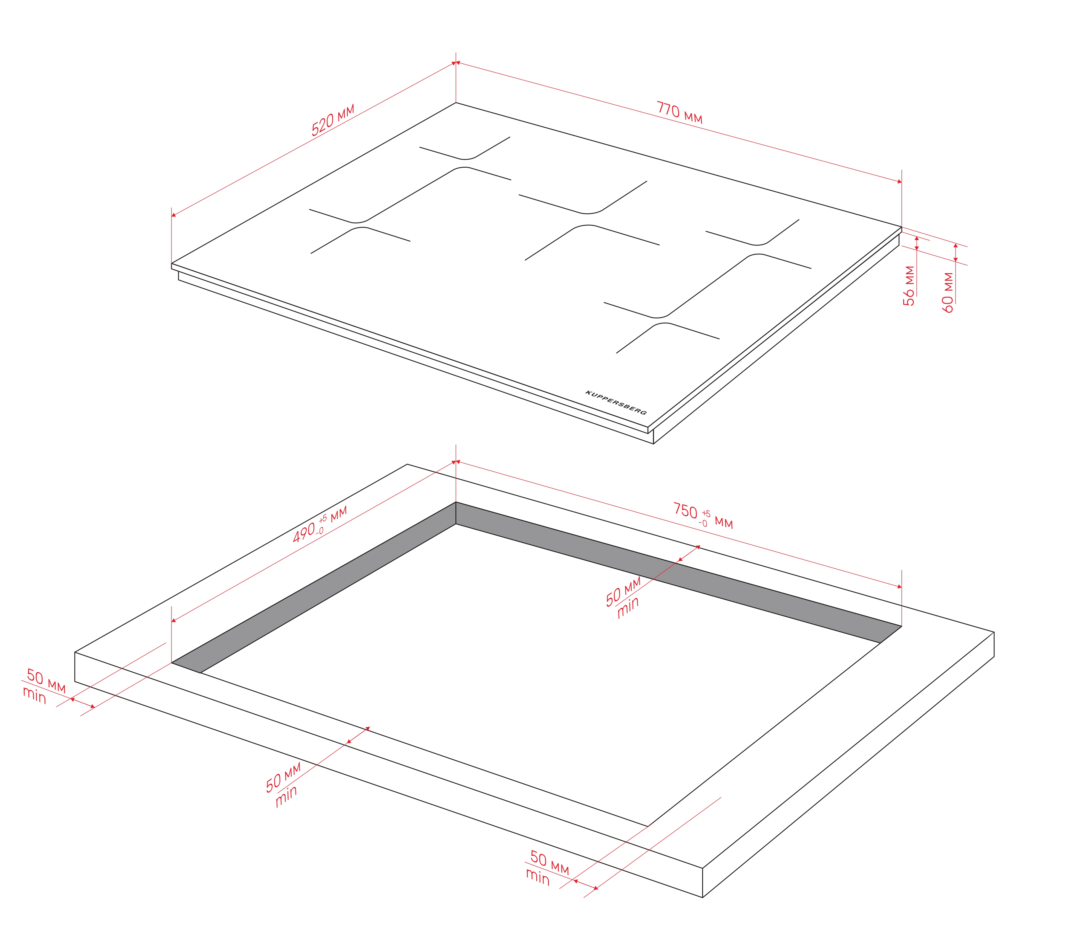 Kuppersberg ICI 818 - схема встраивания к варочной панели на разных языках на Hausdorf